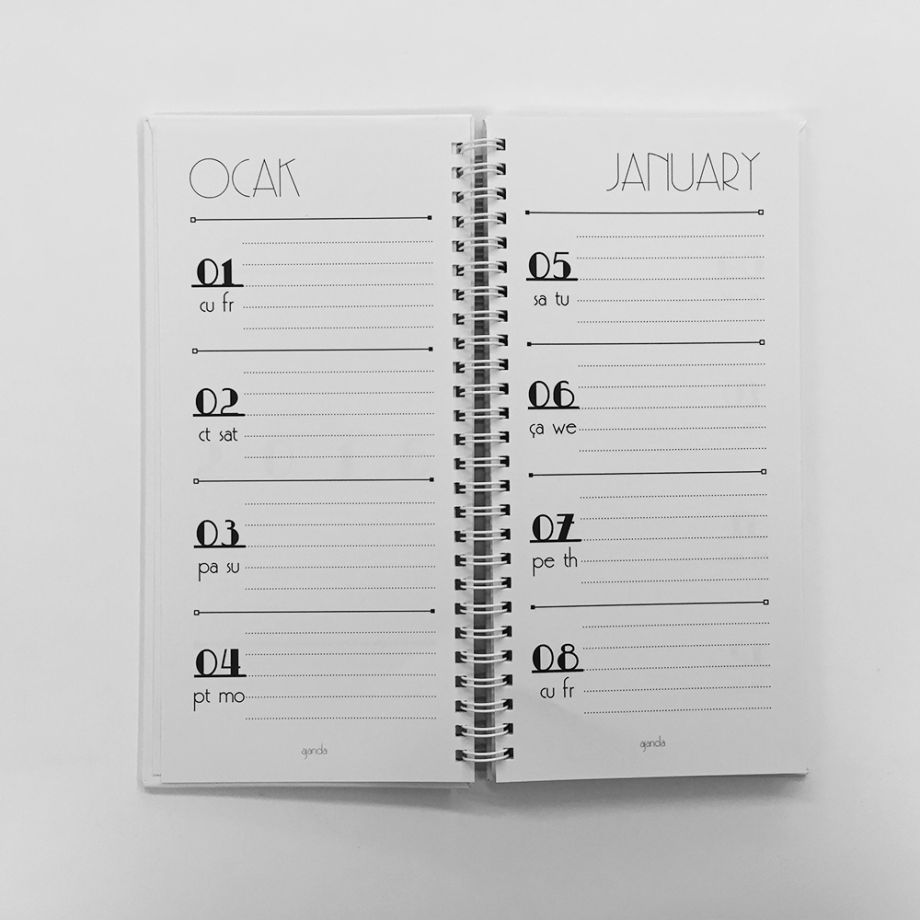 2016 Ajandası, oldukça tipografik, hem Türkçe hem de İngilizce ajanda modelidir.