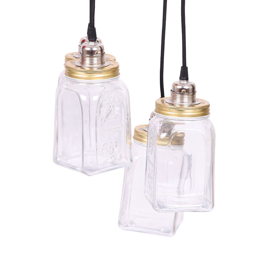 Vintage tarzı avizeniz bir ahşap baza ve 4 adet kavanozdan oluşmaktadır.