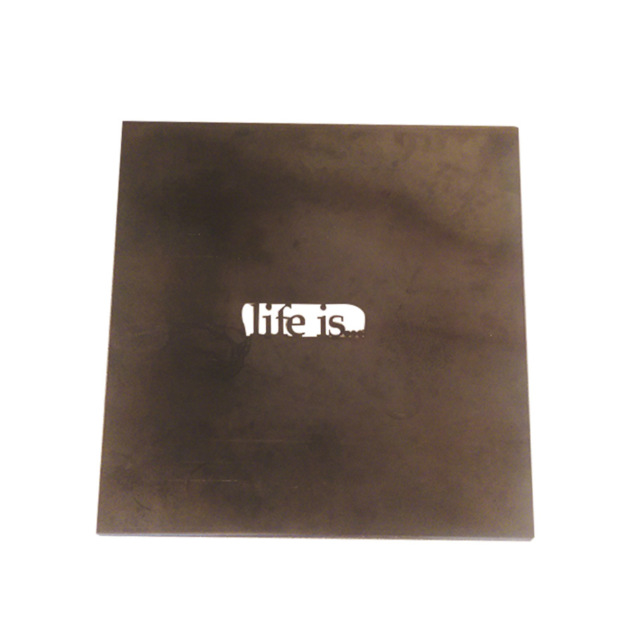 50×50 Çelik Sehpa ayakları kutu profilden, üzeri saç’tan üretilmiştir. Üzerinde(Life is…) hayat… yazmaktadır.
