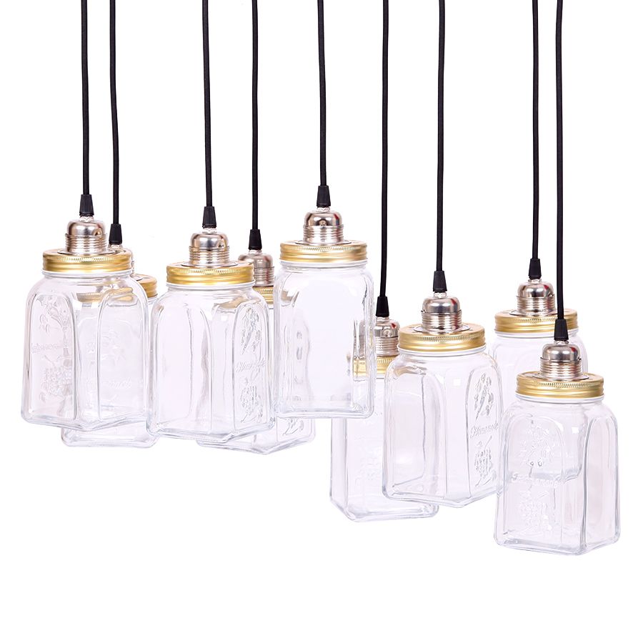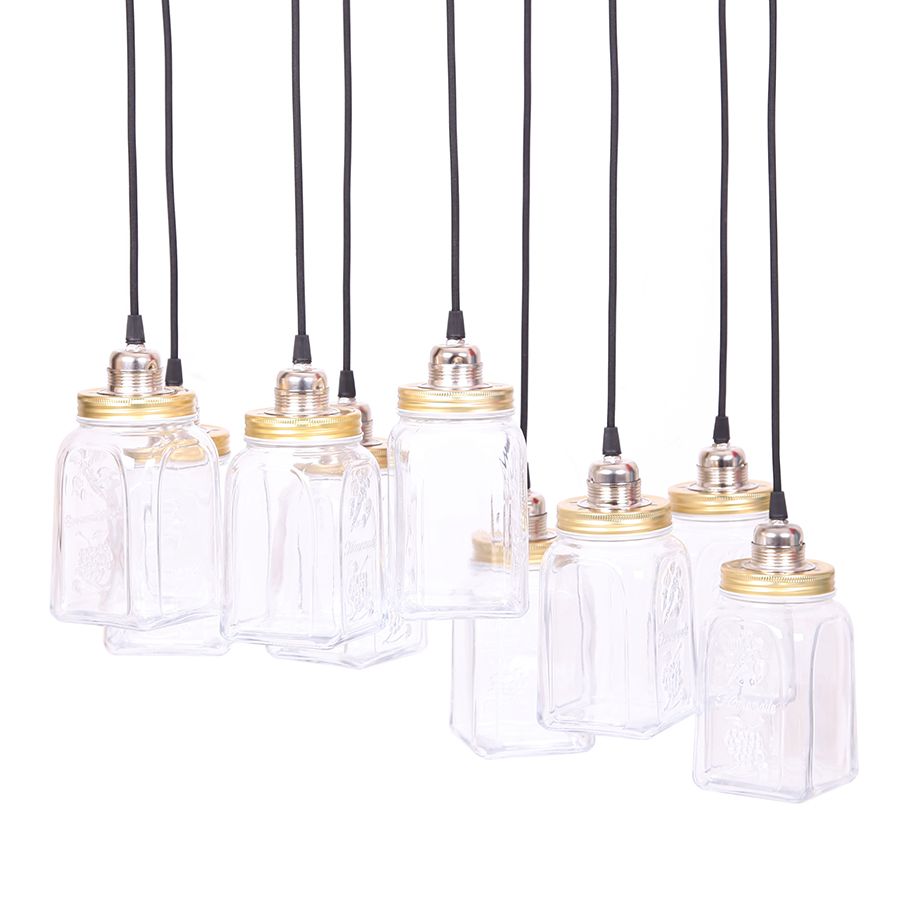 Vintage tarzı avizeniz bir ahşap baza ve 9 adet kavanozdan oluşmaktadır.