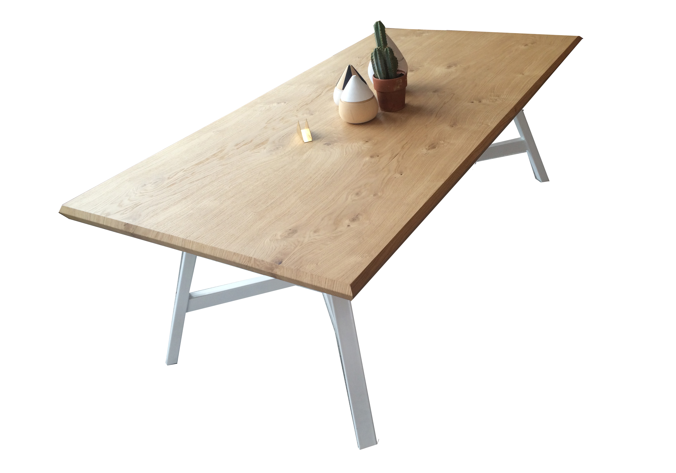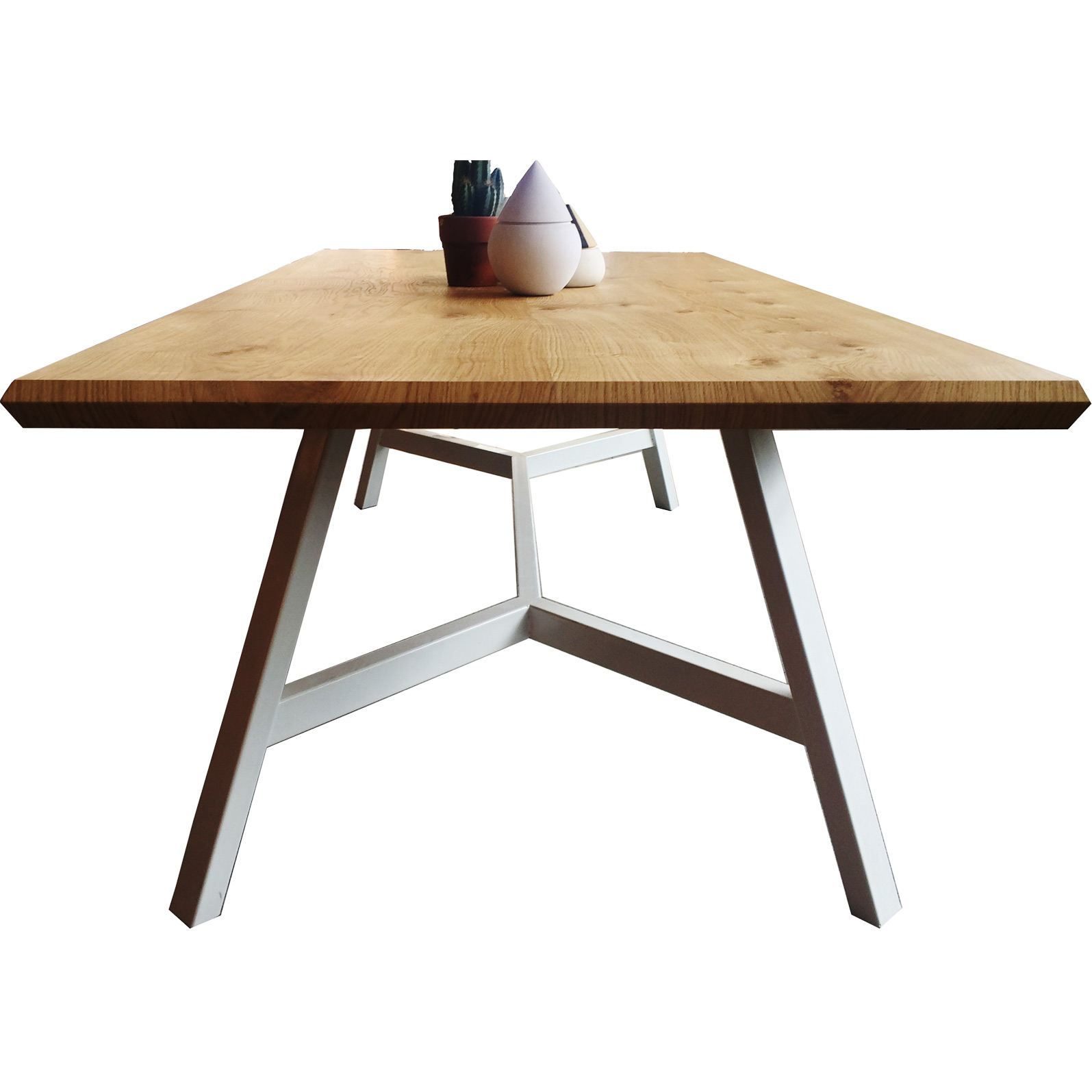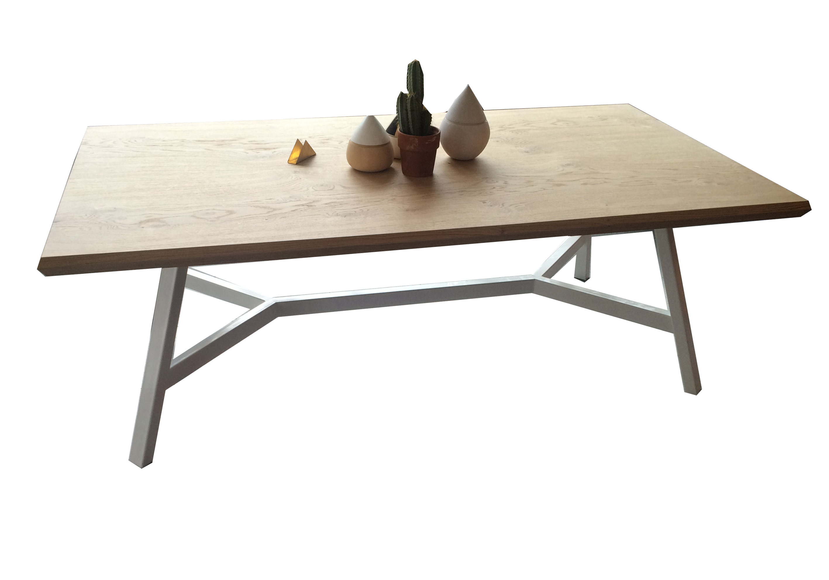 Ahşap Masa budaklı naturel meşe kaplama masa tablası, ayakları demir kutu profil boyalıdır..