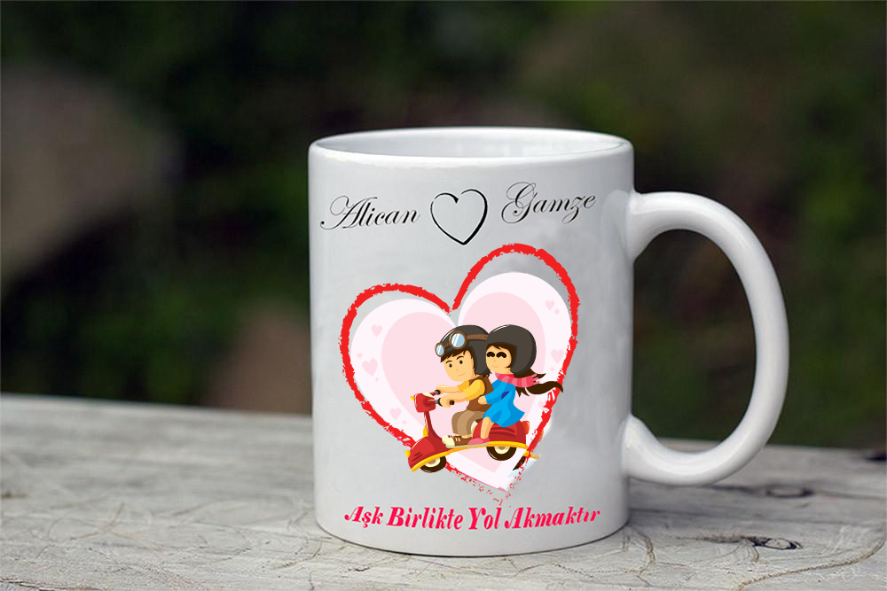 Aşk Birlikte Yol Almaktır Kupa ile sevginize sevgi içeceğinizi tat katın. Porselen kupalar sizlerin beğeneceği tasarımlar ile beğeninize sunuldu. Sevgiliye alınabilecek ve özel günlerde hediye edebileceğiniz özel hediyeler tek tıklama kadar yakın. İstediğiniz hediyeleri kombin yapıp kalpli kutularla hediye olarak alabilirsiniz.