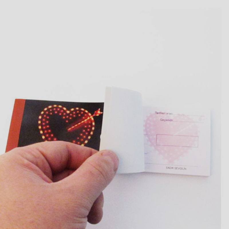 Aşk çek defteri sevgilinize aşkınızı ve sevginizi benzersiz bir yolla göstermenizi sağlar.İçinde özenle seçilmiş 14 bayan , 14 erkek , 12 adet boş olmak üzere 40 tane aşk çek defteri bulunmaktadır.