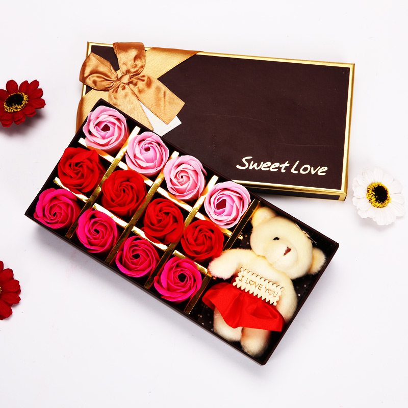 Ayıcıklı Kokulu Sabun Güller 12 adet özel sabun güllerden, 1 adet ayıcık, paket ve kutudan oluşur. Annenize hediye ve sevgilinize hediye olarak alabilir, sürpriz yapabilirsiniz.