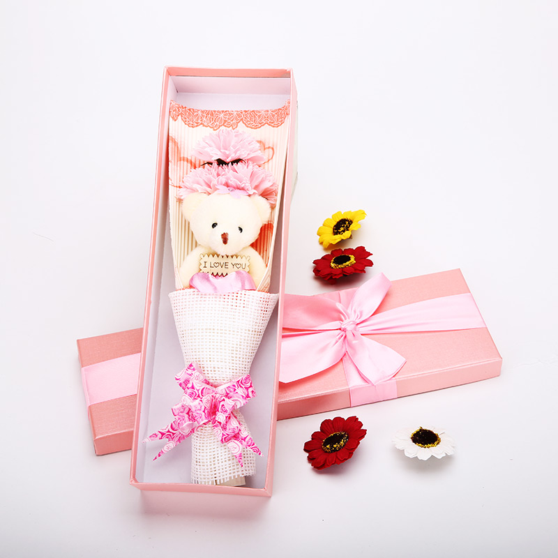 Ayıcıklı Sabun Çiçek çiçeklerden, ayıcıktan, paket ve kutudan oluşur. Annenize hediye ve sevgilinize hediye olarak alabilir, sürpriz yapabilirsiniz.