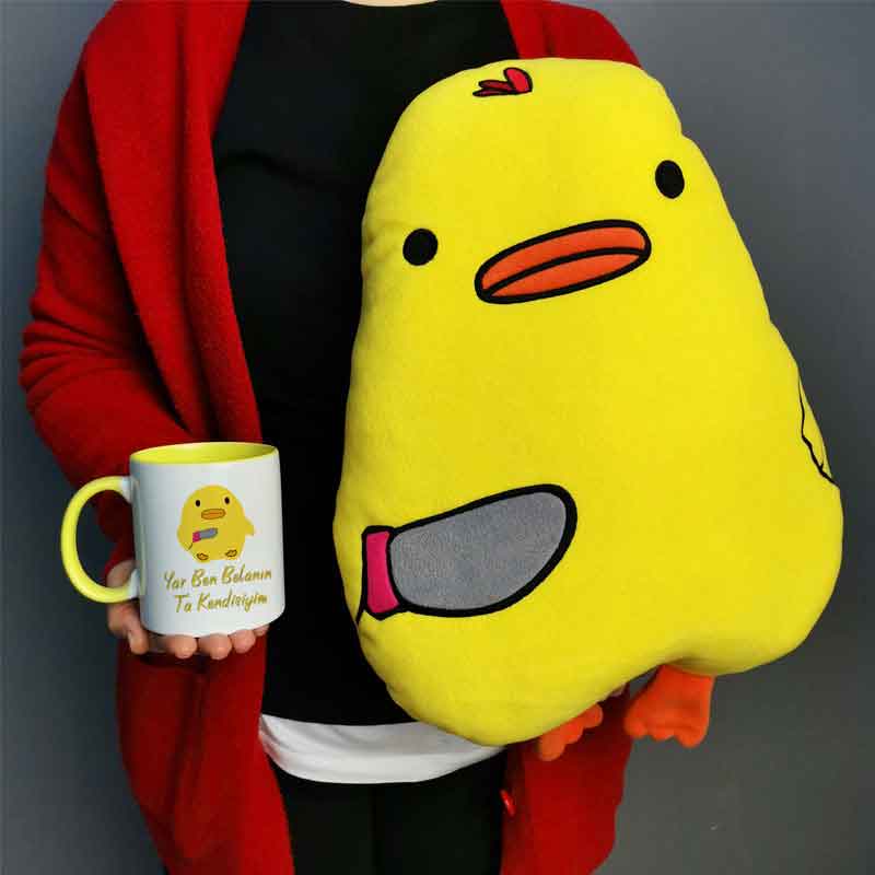Belalı Civciv Yastık Kupa Set