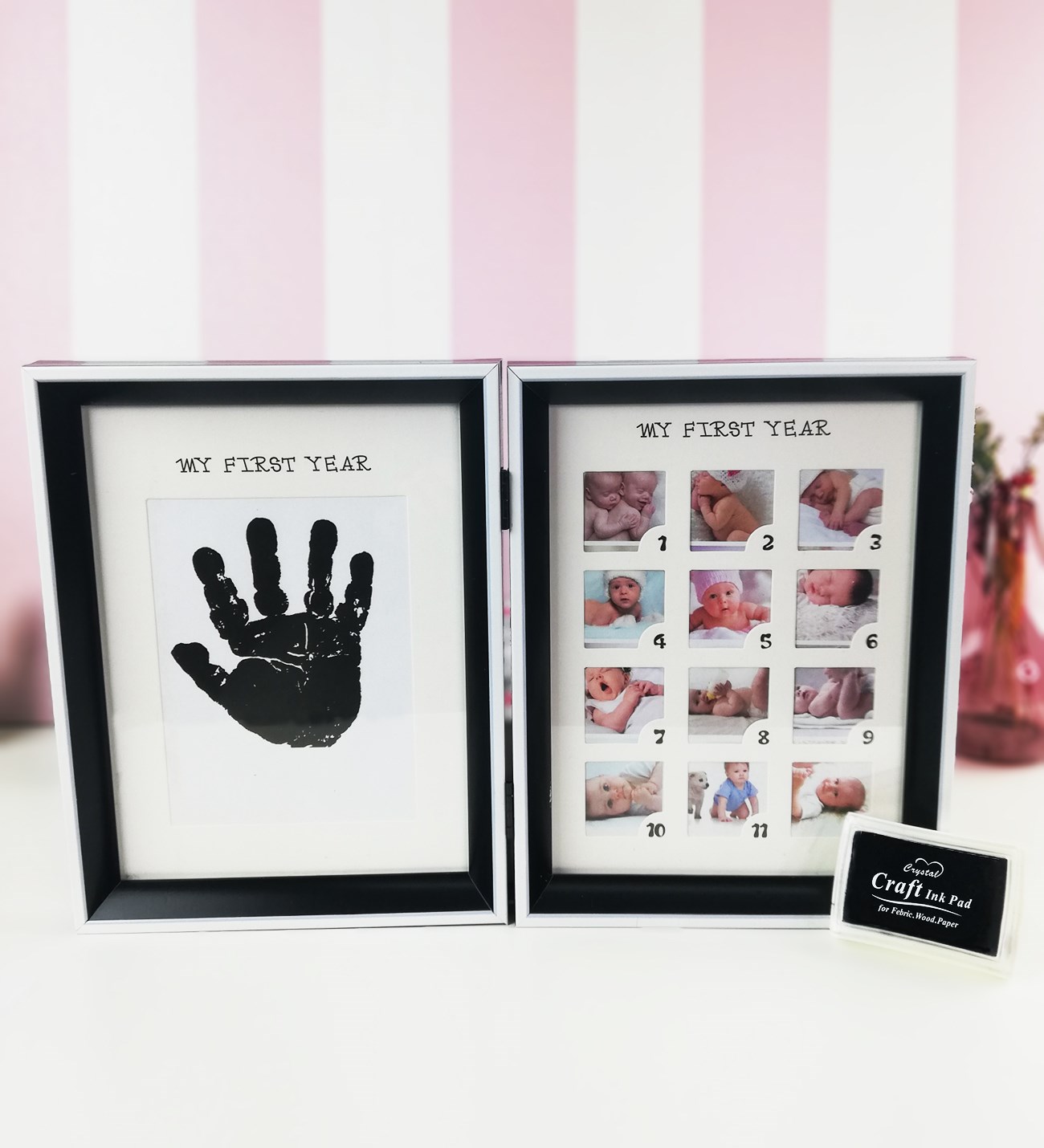 Yeni doğan bebek çerçevesi, kutusunun içeresinden bebeğin el izini çerçeve içerisindeki sayfaya geçirebilmek için özel olarak üretilmiş bebeklerin tenine zarar vermeyecek mürekkep bulunmaktadır.