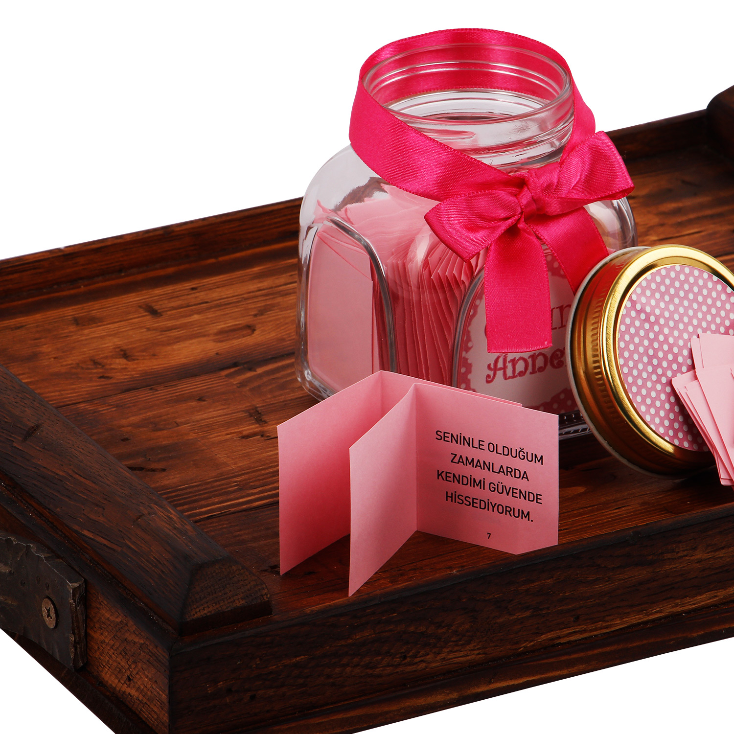 Mesajlı kavanoz ile annenize, onu çok sevdiğinizi bir de bu hediye ile gösterebilir, onu özlediğinizi hatırlatabilir ya da teşekkür edebilirsiniz.