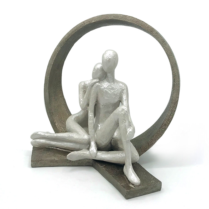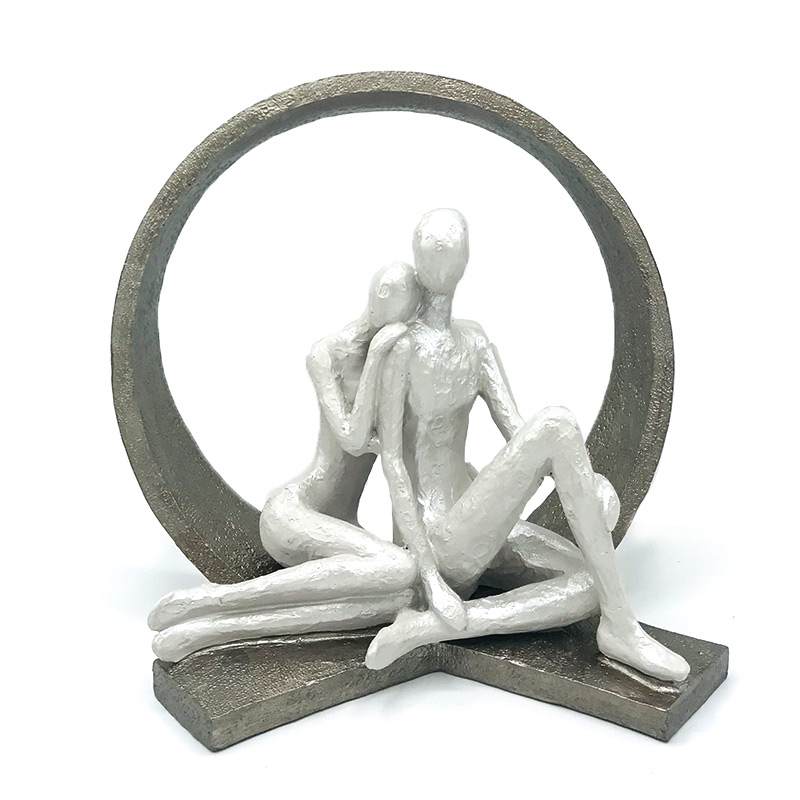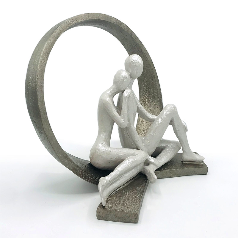 Çember İçinde Sevgililer Biblo, metalik gümüş ve gri renkler ile renklendirilmiştir.
