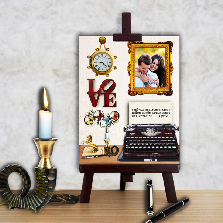 Daktilo Tasarımlı Afiş Saat sevdiklerinize , fotoğrafınızı zamanın sonsuzluğu ile birlikte hediye etmeye ne dersiniz?
