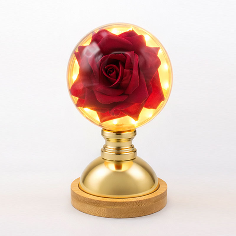 am küre tasarımlı Dekoratif Işıklı Gül Masa Lambası, sıcak LED ışığıyla şık bir ambiyans sunar. USB kablolu, 16,5 cm dekoratif lamba.