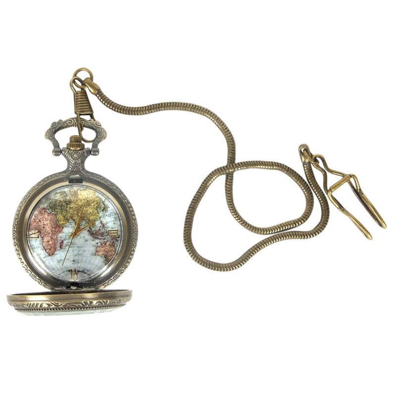 Dünya Haritalı Köstekli Saat nostalji tasarımı ile güzel bir hediye alternatifi olacaktır.
