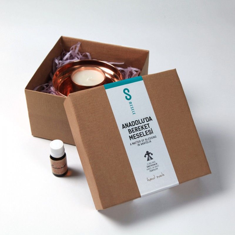 İçindekiler: Bakır ehlikeyif, bir adet mum, 10cc doğal lavanta yağı