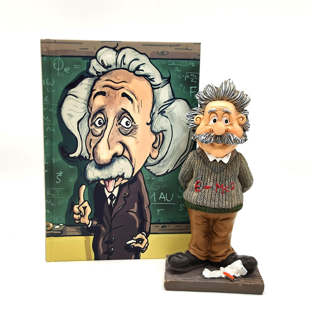 Einstein Biblo Defter Seti sevdiklerinize verebileceğiniz güzel bir hediyedir. En çok bilinen ünlü düşünürlerden, hem fizikçi hem de matematikçi olan Albert Einstein figürlü biblo ve Einstein baskılı defterden oluşan, eğlenceli ve kaliteli bu set hem kendinize hem de dostlarınıza hediye edebileceğiniz oldukça güzel seçenektir.