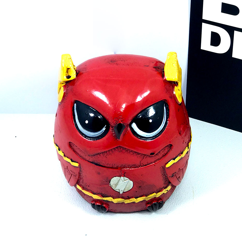 Flash Baykuş Kumbara değişik tasarımı ile biblo ve ya kumbara olarak kullanılabilir.Alt kısmındaki plastiği çıkartıp içerisine koyduğunuz paraları alabilirsiniz. Polyester malzemeden üretilmiştir.