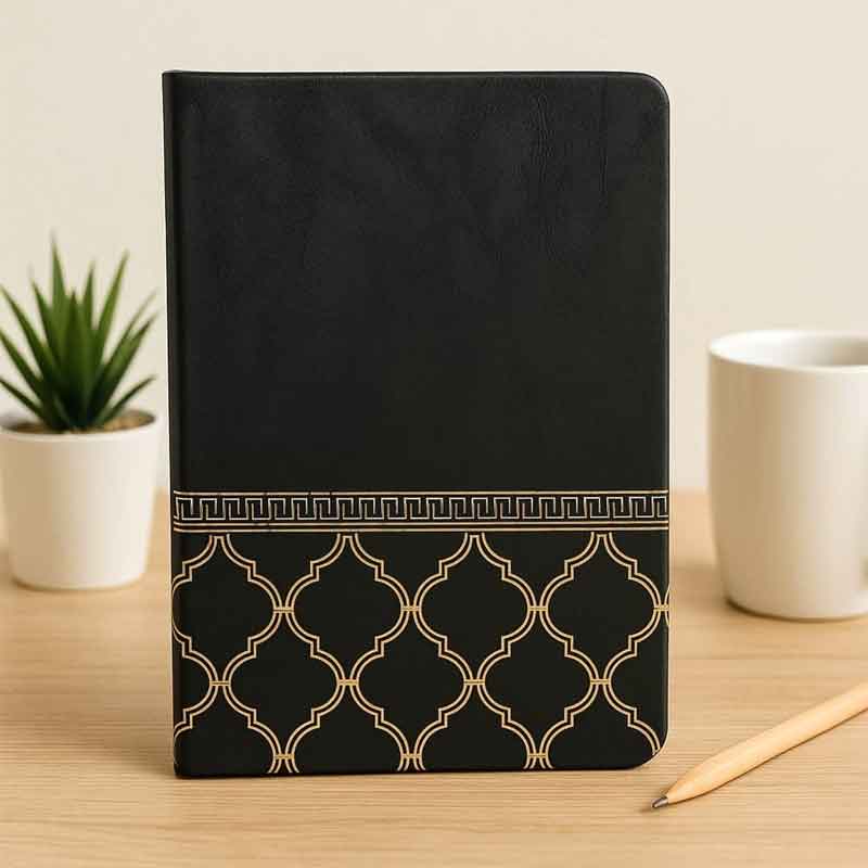 Gold Desenli Siyah Deri Defter ve Kalem Seti AÇIKLAMASI