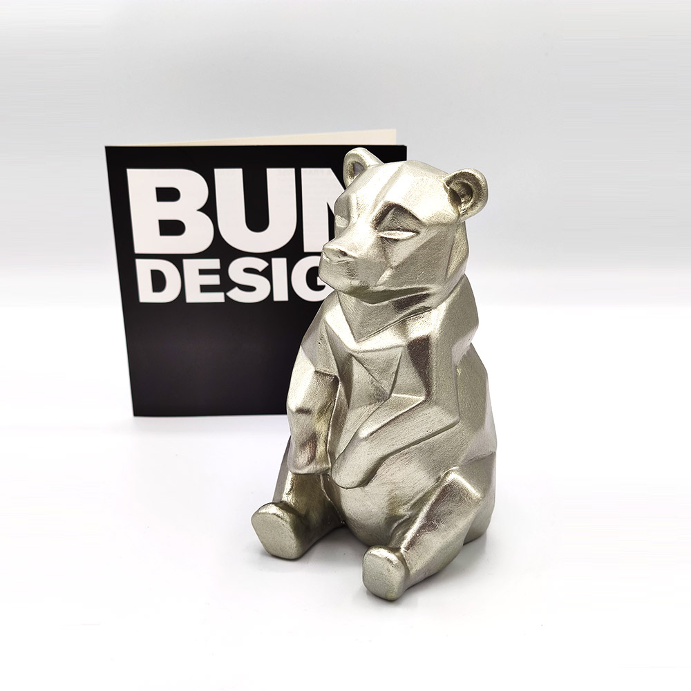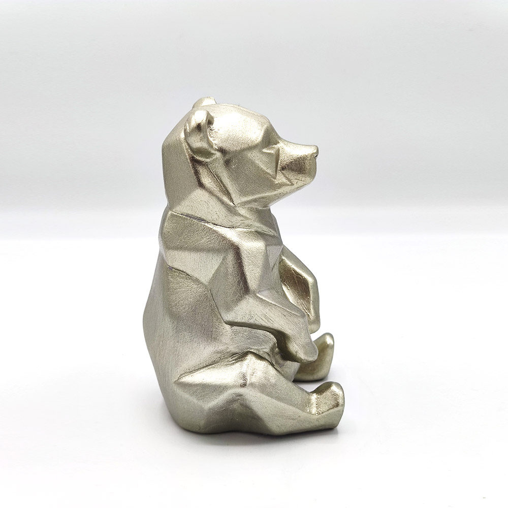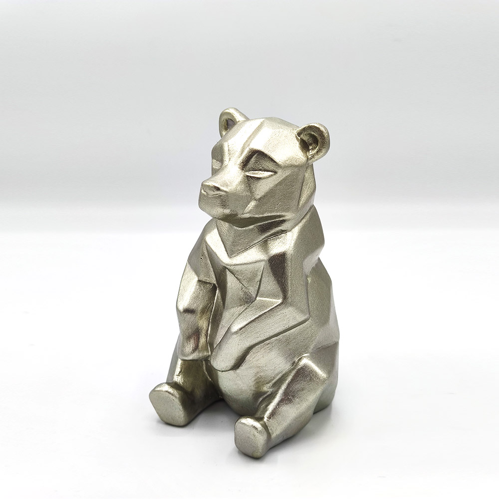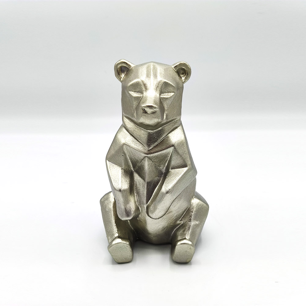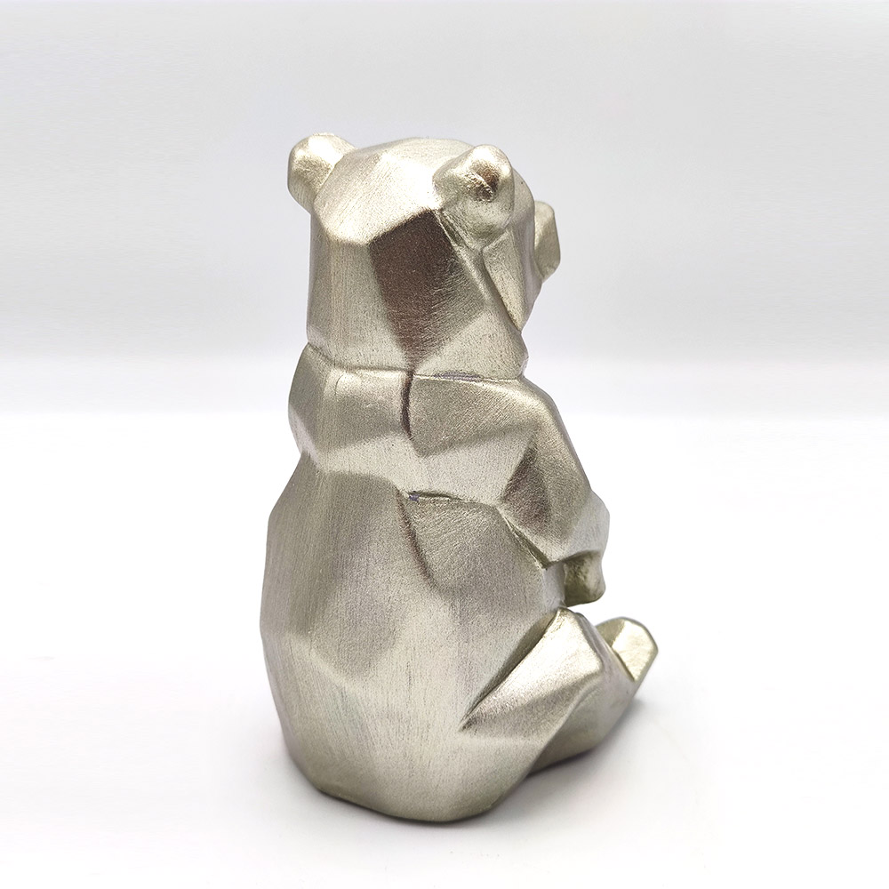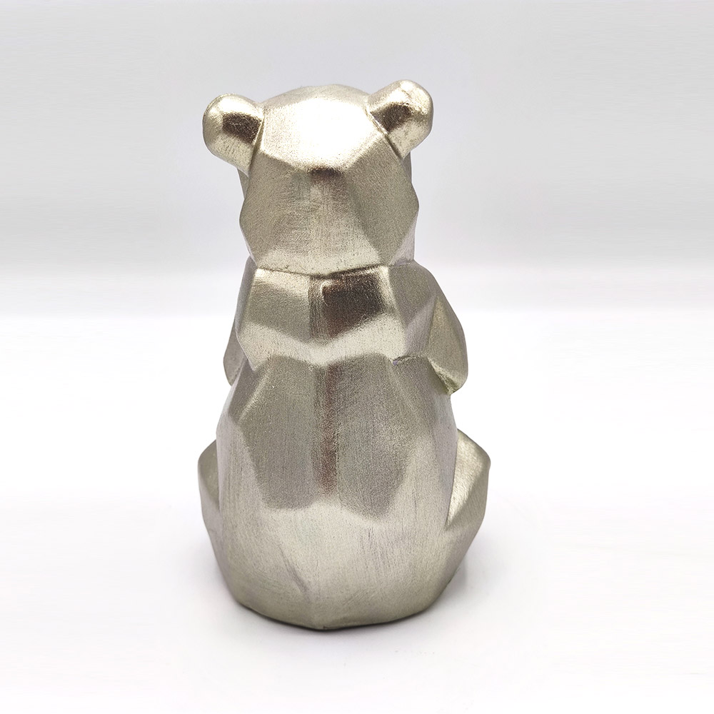 Polyester Ayı Biblo üzeri gümüş renkle boyanmış modern ve şık bir biblodur. Geometrik mimari şekliyle evinize ve ofisinize renk katacaktır.