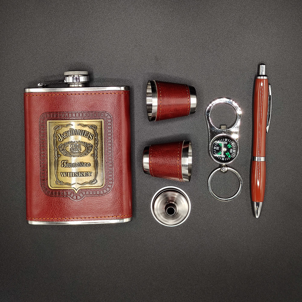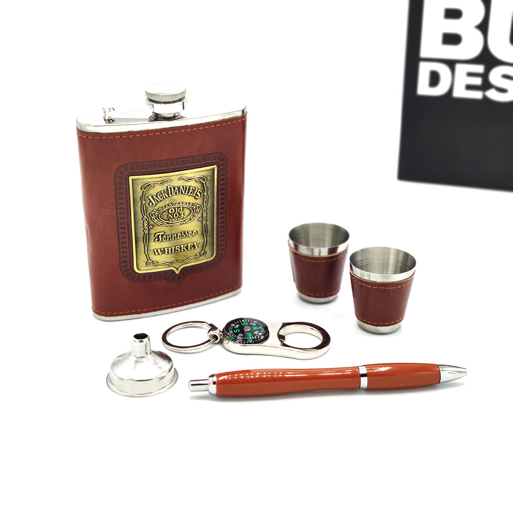 Hediye Matara Seti şık kutusu ve içerisindekilerle güzel bir hediye olacaktır. 1 adet kahverengi jack daniels matara