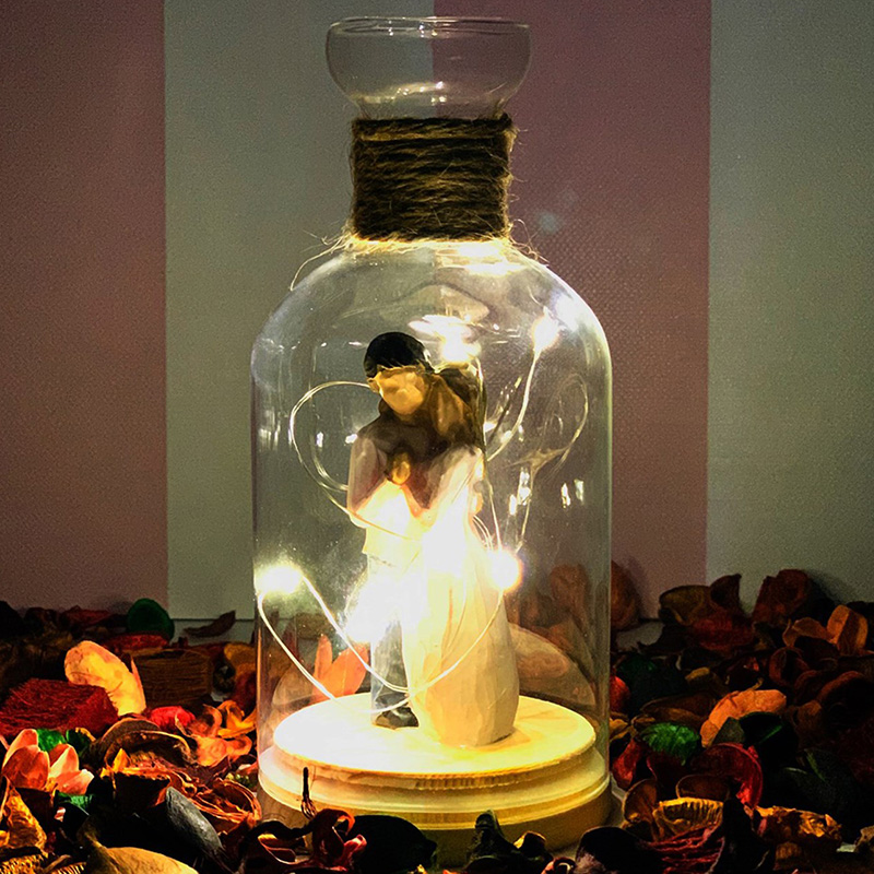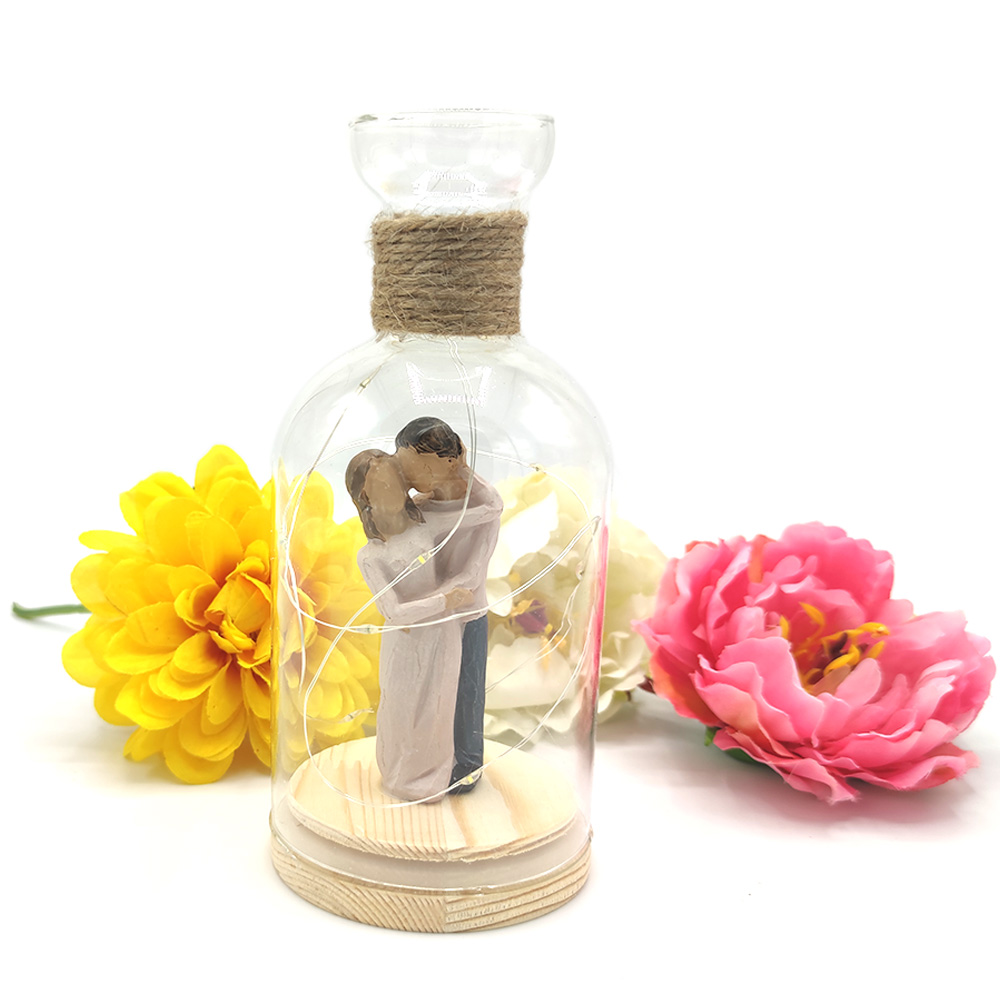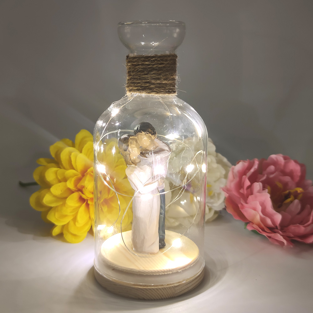 Işıklı Birbirine Sarılan Aşıklar Cam Fanus Biblo AÇIKLAMASI