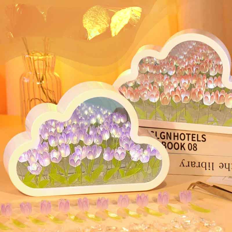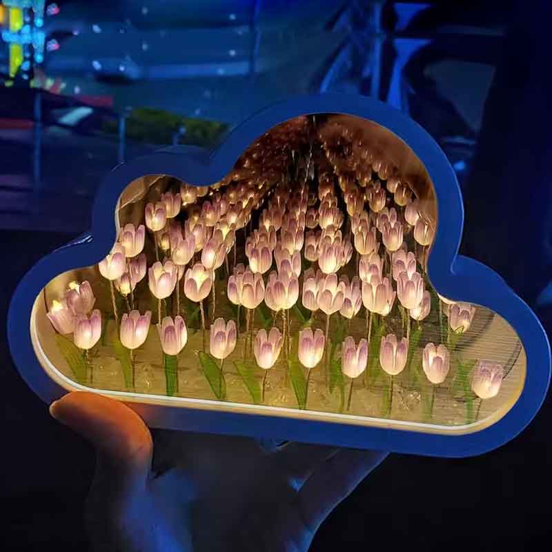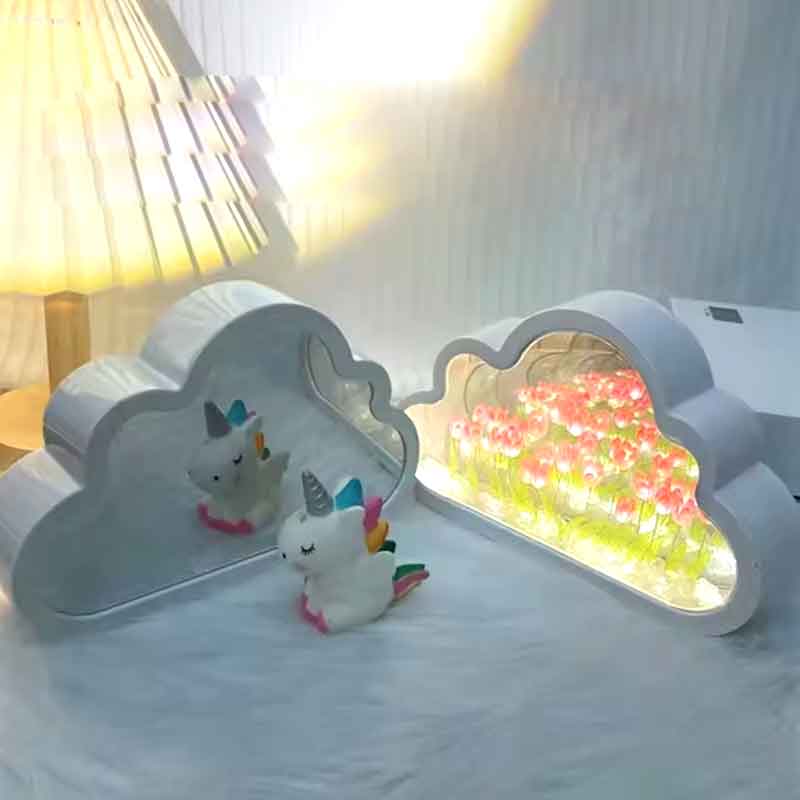 Işıklı Sonsuz Lale Bulut Ayna, hem dekoratif hem de işlevsel tasarımıyla yaşam alanlarınıza şıklık katıyor. Bulut şeklindeki özel tasarımı, ışık kapalıyken ayna olarak kullanılabilirken, ışık açıkken içindeki laleler sonsuzluk etkisi yaratır. Göz alıcı lale detayları ile masaüstü dekorasyonunuzun yıldızı olacak bu ürün, gece lambası olarak da kullanılabilir.