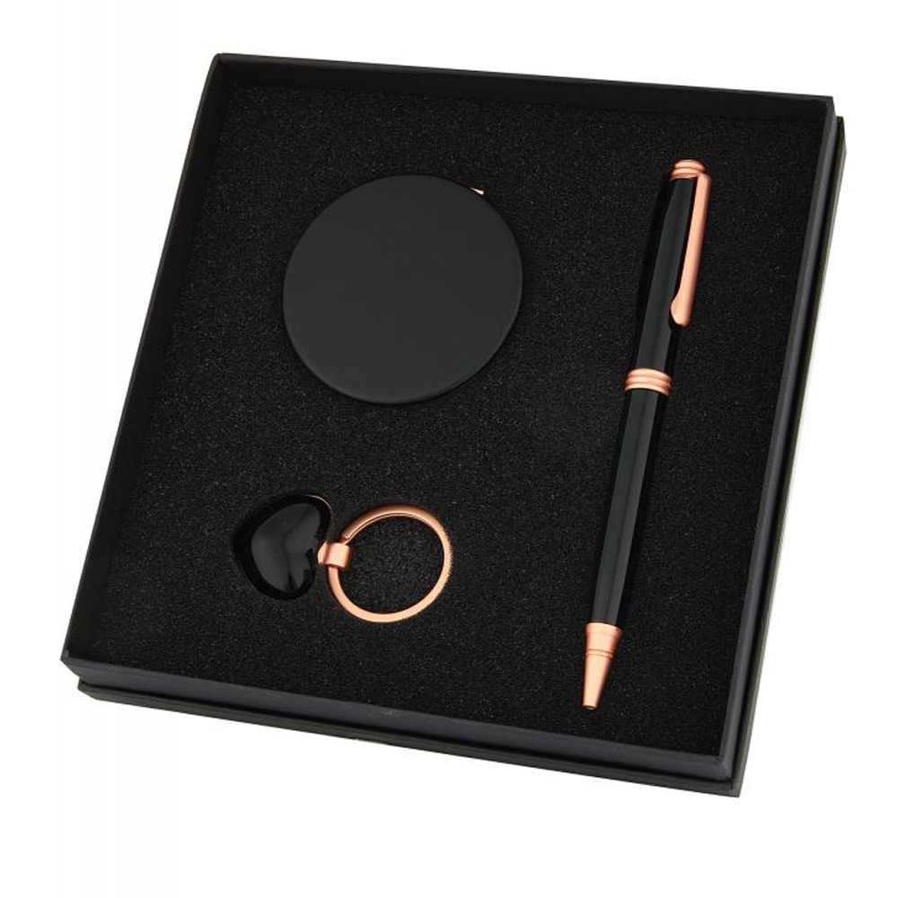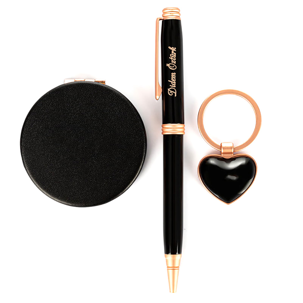 Kadına Hediye Kalpli Anahtarlık Seti içerisinde makyaj aynası , kalpli anahtarlık ve roller kalem bulunur. Rengi ve içerisinde ürünler ile güzel bir hediye olacaktır. Set içerisinde yer alan kalem üzerine lazer kazıma yöntemi ile isim yazılmaktadır. Lazer kazıma yöntemi ile kalemin üzerinden hiçbir zaman kız arkadaşınızın ismi silinmeyecek ve her kalemi kullandığında kendisini özel hissedebilecektir.