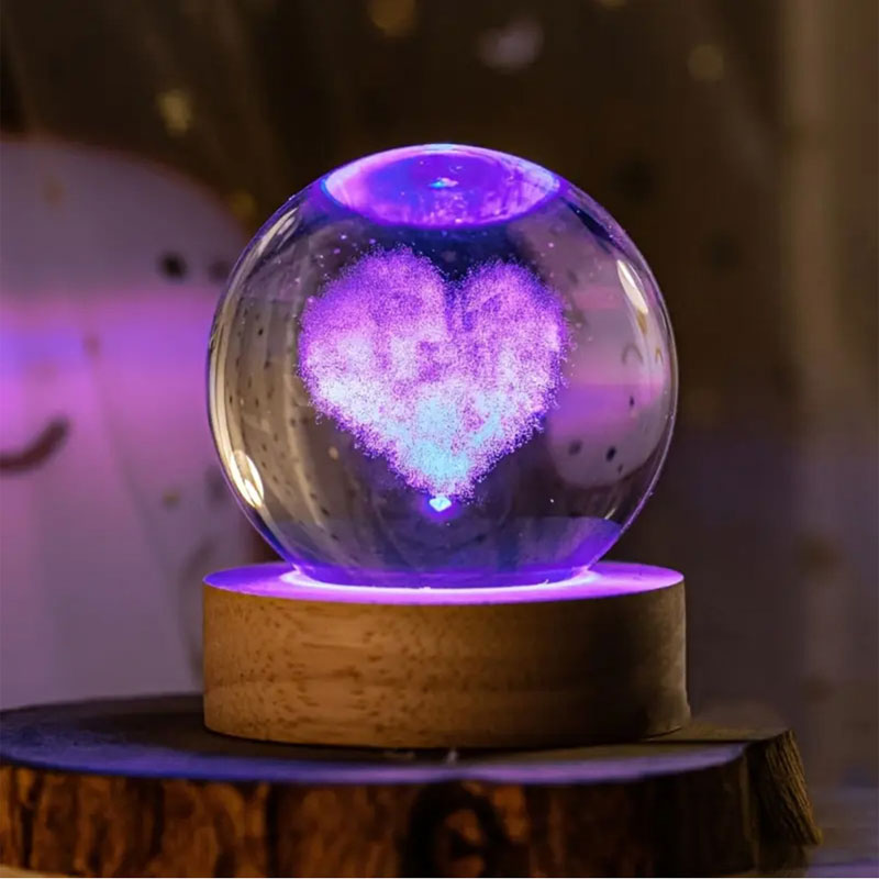 Kalp Tasarımlı Işıklı Cam Küre AÇIKLAMASI