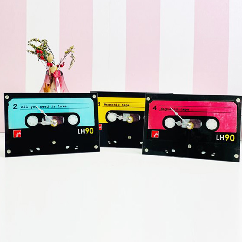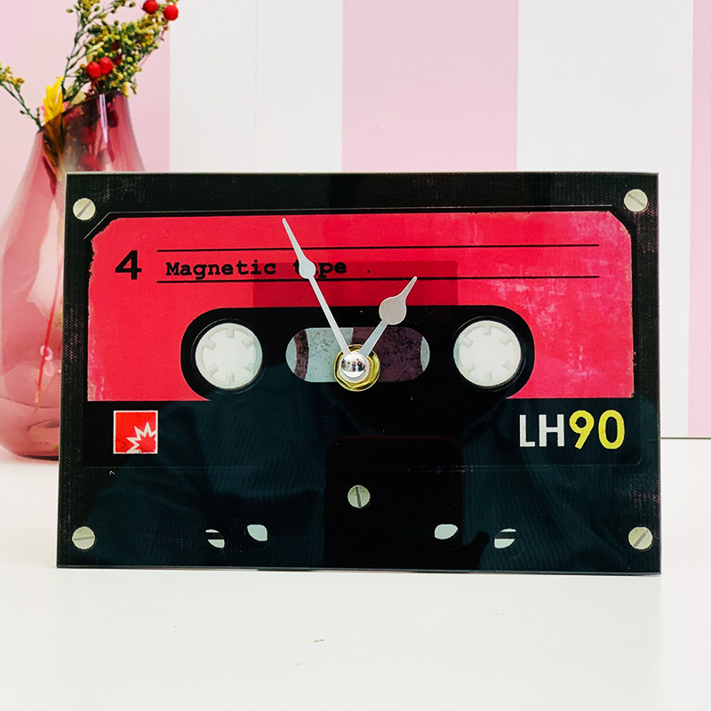 Kaset Masa Saati eşsiz tasarımıyla masanıza şıklık katacak nostaljik görünümlü masa saati. Malzemesi camdır.