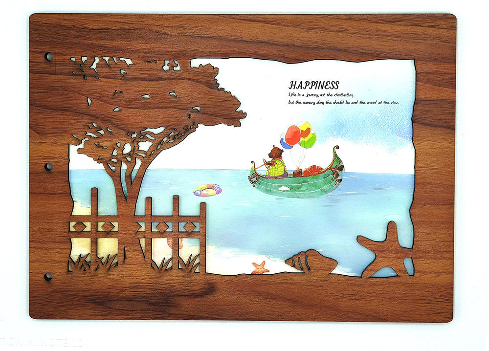 Kişiye Özel Ahşap Fotoğraf Albümü ölümsüz anılarınızı saklamak ve sergilemek için güzel bir albümdür.Çizgisiz düz karton kağıtlardan oluşur. Defter enine doğru geniştir. Kaliteli Ahşap dış kapağı mevcuttur. ( Ön ve Arka Kapak ) Sayfaların tamamı siyah renktedir. Toplam 25 yaprak (50 sayfadan ) oluşur. ( toplam ortalama 100 fotoğraf kapasitelir. ) Paket içerisinde fotoğraflarınızı köşelerinden tutturabileceğiniz renkli stickerlar mevcuttur. Ahşap fotoğraf albümü üzerine lazer ile kazıma yapılarak kişiye özel yapılmaktadır.