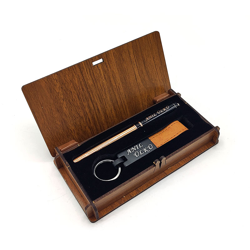 Kişiye Özel Ahşap Kutulu Kalem Anahtarlık Seti – Şıklığı ve Zarafeti Bir Arada Sunan Özel Hediye!
