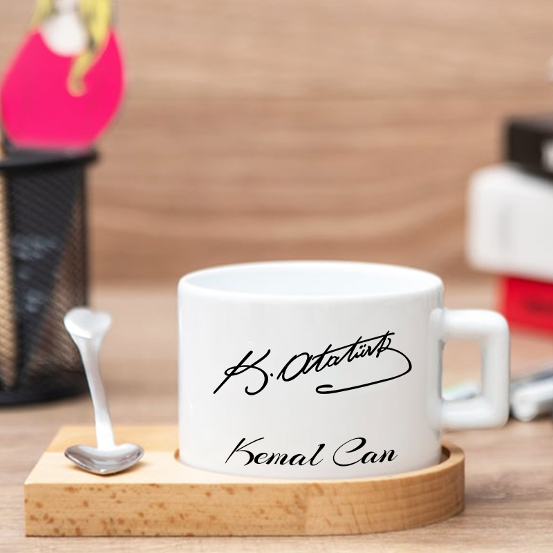 Kişiye Özel Atatürk İmzalı Ahşap Altlı Fincan AÇIKLAMASI