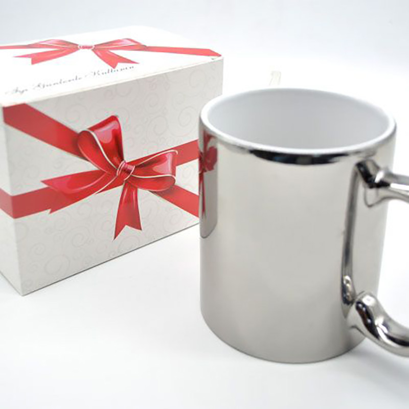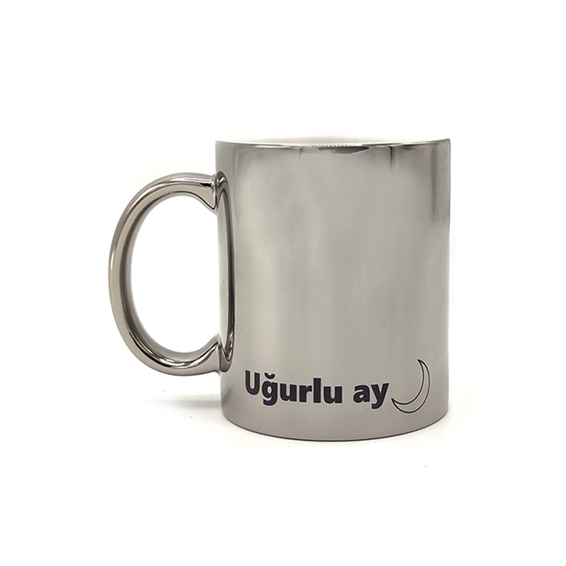 Gümüş renginde olan kupa üzerine istediğiniz yazı, harf, isim ve desen basılır. Siyah harici desenlerde silik bir görüntü ortaya çıkmaktadır. Aynalı kupa olduğu için fotoğraf baskısı mat görünebilir.