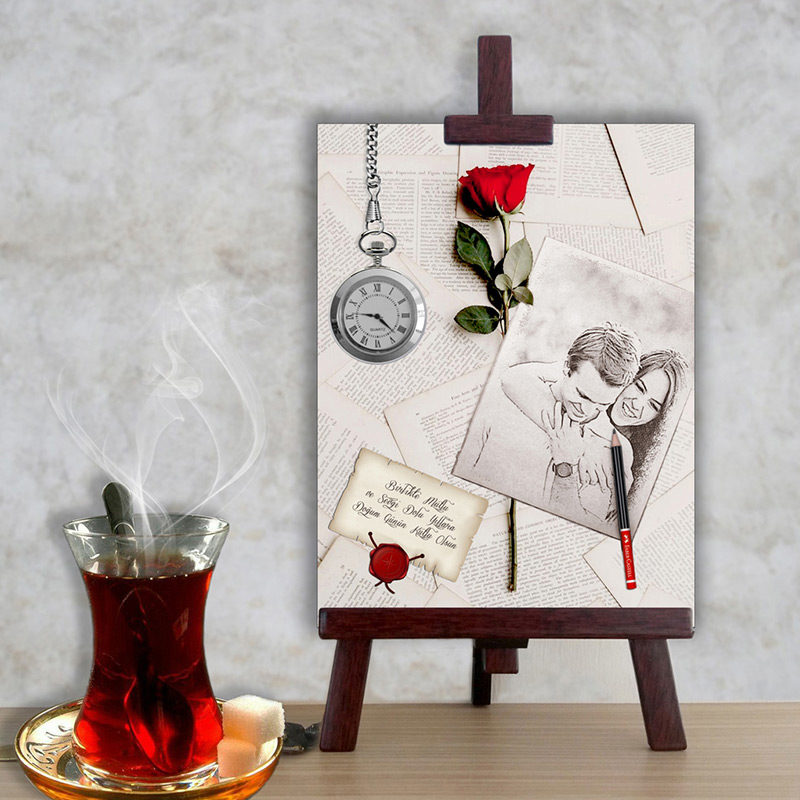 Sanatsal bir bakış açısı ile tasarlanıp üretilen masaüstü saatler yeni ve farklı bir hediyedir. Ürünün, saati denenerek, pil takılmış bir şekilde gönderilecektir. Saat kasası metal, camı mineraldir. Ölçüler: Baskı alanı 15×20 cm Ürün toplam ölçüsü 15×30 cm dir. Eser 8mm ahşap üzerine sıcak baskıdır. Solma ve çıkma yapmaz. Saat Ölçüsü 4 cm çap
