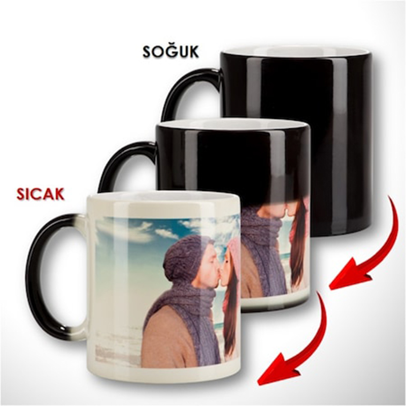 Kişiye Özel Sihirli Kupa sevdiklerinizi şaşırtacak ve mutlu edecek harika bir ürün.Sizin zevkinize sunulan keyifli ve özel tasarımlarla kendi bardağınızı kendiniz tasarlayabilirsiniz.Sihirli kupa içine koyduğunuz kahve, çay veya sıcak su siyah kupanızın içindeki saklı fotoğrafları ortaya çıkartacak. Sihirli Kupa ile sevdiklerinizi şaşırtıp mutlu edebileceksiniz.