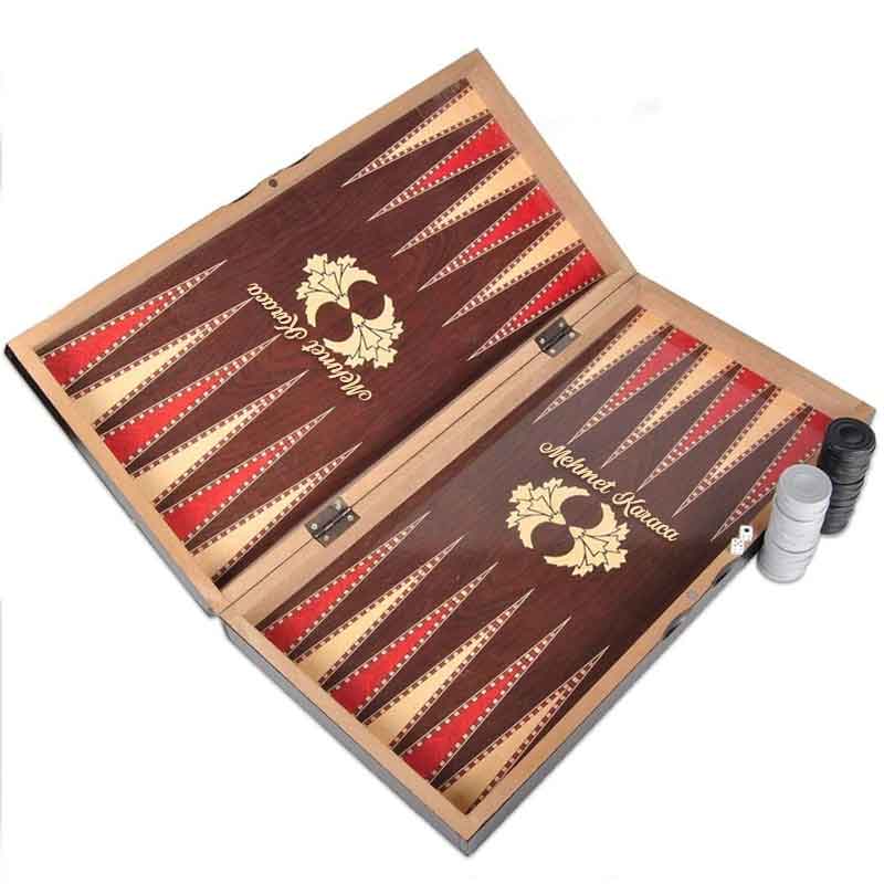 Kişiye Özel Tavla, Cüzdan ve Kemer İsminize özel olarak işlenmiş gerçek ceviz kaplama ürün arkadaşlarınızı rakip sahada oynuyor hissi verecek