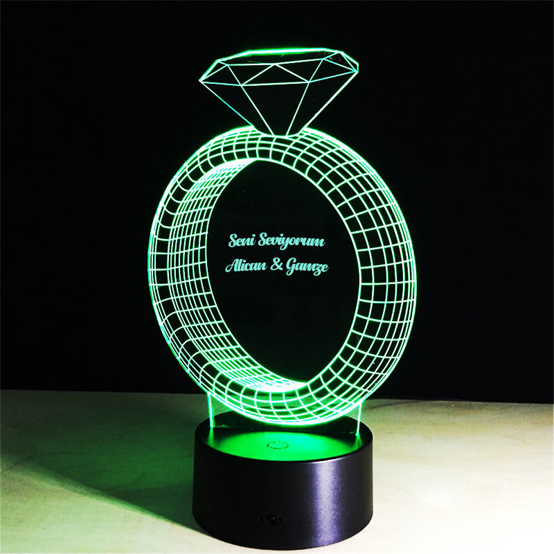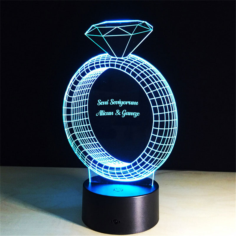 Kişiye Özel Tek Taş Gece Lambası 7 Renk farklı ışık yanmaktadır. Üzerindeki tuş ile ışığın rengini değiştirebilirsiniz.