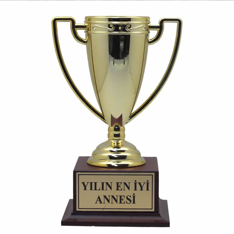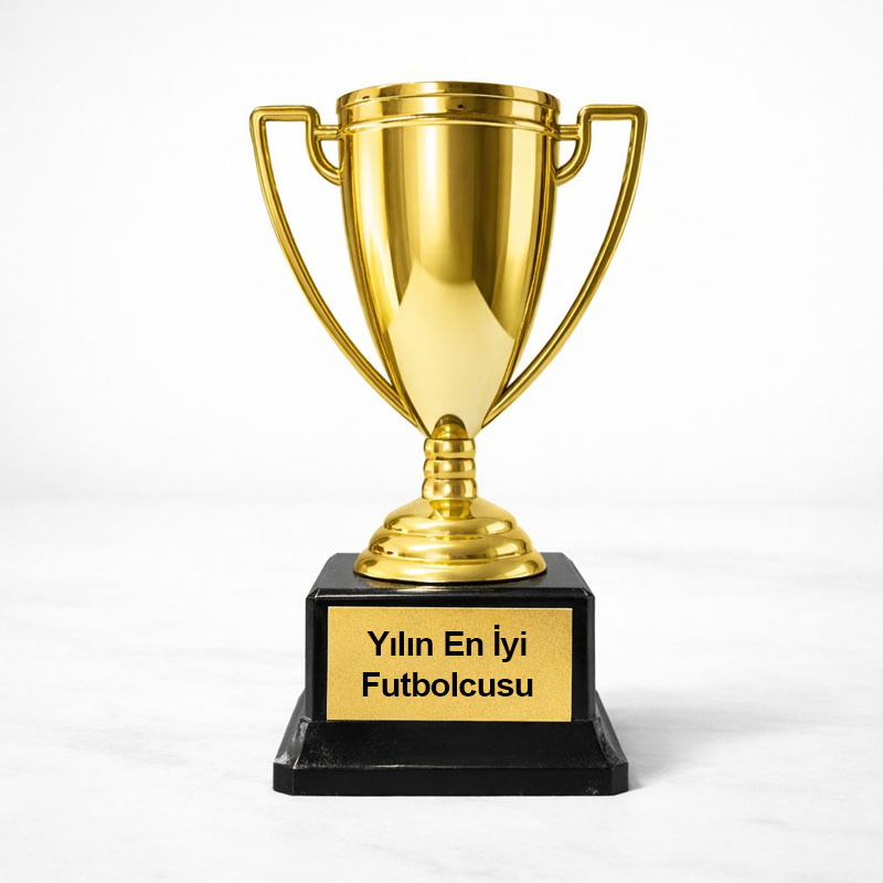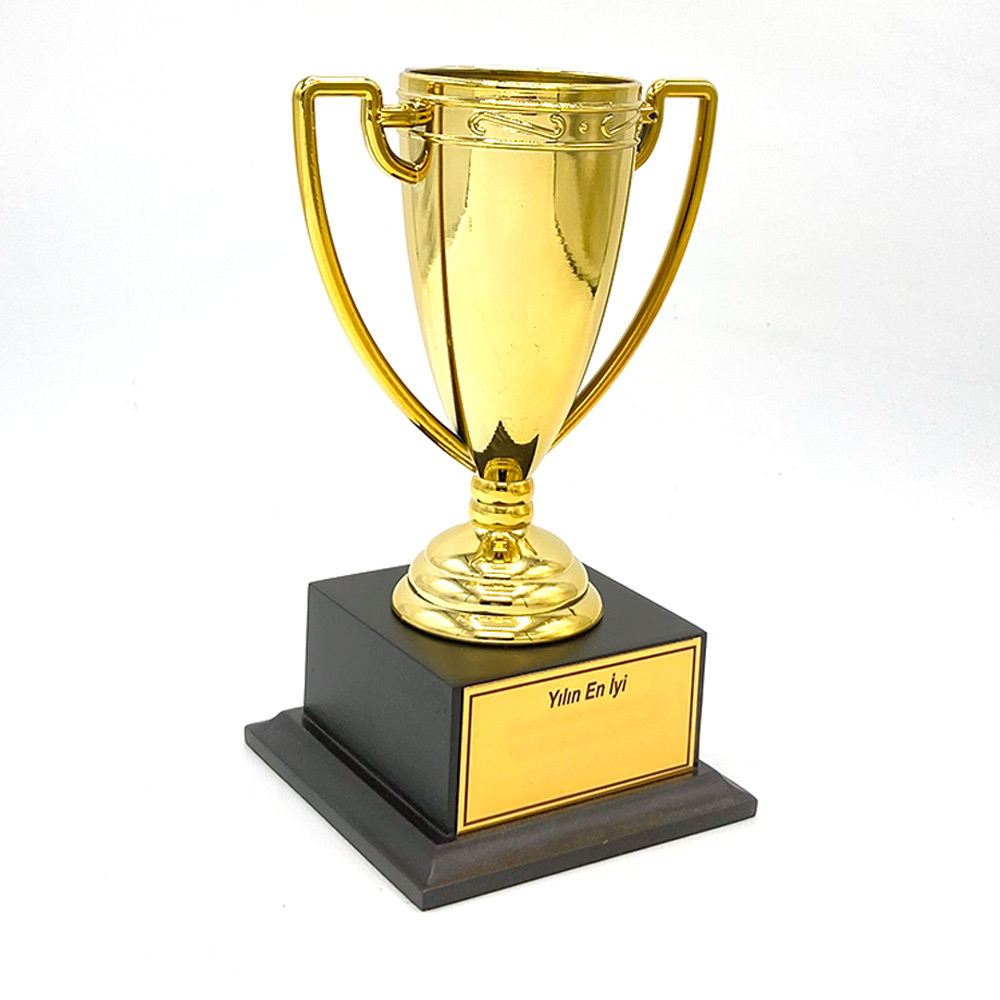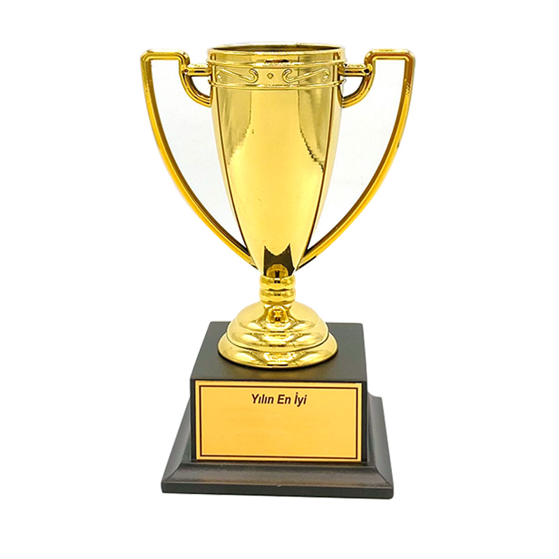 Kupa altın sarısı renkte olup, plastik zemin üzerine tutturulmuş yüzüne istediğiniz yazıyı (istediğiniz ödül adı, ör: 2007 Yılın Babası, Ayın Çalışanı,
