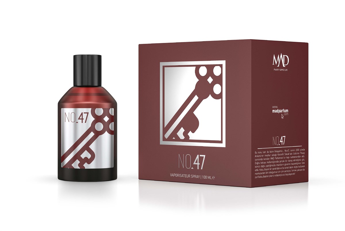 Mad No.47 Unisex Parfüm, odunsu bir kokuya sahiptir. Unisex bir parfüm türüdür. Üst notasında safran, ayva, çarkıfelek ve yeşil biberin karşı koyulmaz uyumuna kaküle, kehribar, sandal ağacı ile olan baş döndürücü etkileyici bir karışım eşlik ediyor.