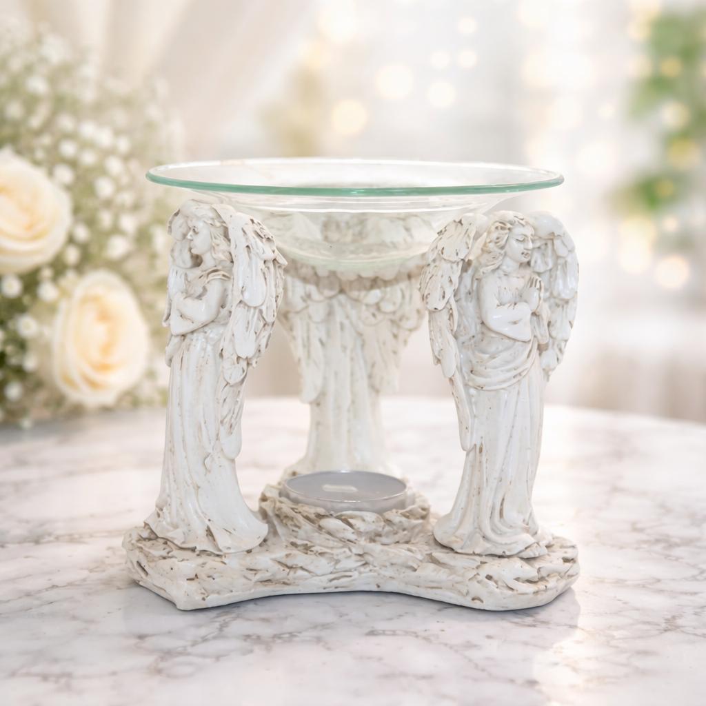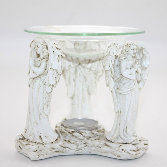Melek Buhurdanlık, Dostlarınıza sevdiklerinize hediye olarak alabileceğiniz güzel bir üründür. Meleklerden oluşan şık bir buhurdanlık modelidir. Üst kısmına bir miktar su konulduktan sonra, içine bir kaç damla yağı damlatılır. Alt kısmına mum yerleştirildikten sonra, yakılarak yağın ısınıp koku yayması sağlanır. 2 farklı modeli mevcuttur. Stok durumuna göre karışık gönderilmektedir. Buhurdanlık alt kısmı polyester malzemeden, buhur yağını koyacağınız yer cam malzemeden üretilmiştir. Sağlığa zararlı herhangi bir madde bulunmamaktadır. Buhurdandaki su bitmişse ve mum yanmaya devam ediyorsa hazneye hiçbir zaman soğuk su eklemeyiniz. Ani ısı değişimleri seramiğin yüzeyinde çatlaklara sebep olabilir. Çatlak olması durumda, sızdırma olmadığı sürece buhurdanınızı kullanmaya devam edebilirsiniz. Eğer yeniden ortamınızı kokulandırmak istemiyorsanız, üst haznedeki su bittiği zaman mumu söndürünüz.
