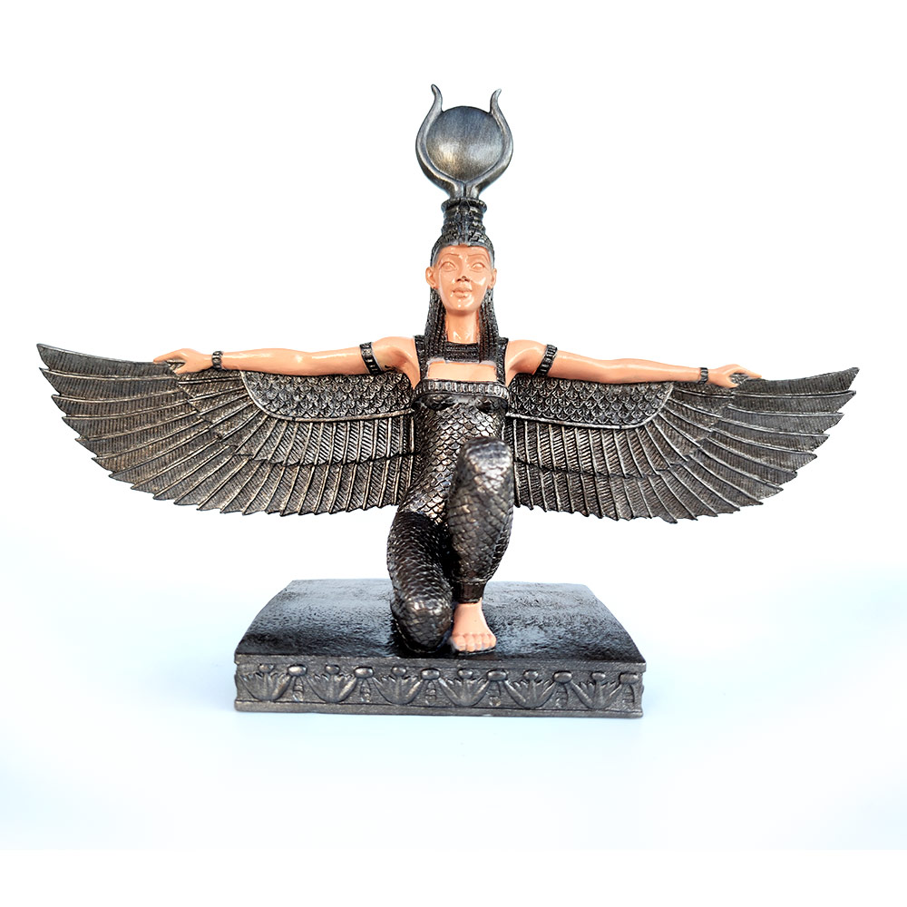 Mısır Tanrıça İsis Biblo, Mısır tarihinin başından sonuna kadar Mısır’ın en büyük tanrıçası olmuştur. Sevgisi tüm canlıları kapsayan bir annedir. İsis, yaratılmanın kadın modelidir. Mısır bütünlüğünün taptığı tek tanrı olduğuna inanılmaktadır. İsis, doğurganlık, büyü ve sağlık tanrıçasıdır. İsis, birkaç farklı şekilde tasvir edilmiş, ancak genelde bir akbaba başlığı ya da boynuzlu, güneş diskli, uçurtma tüyleri olan bir taç giyiyor.