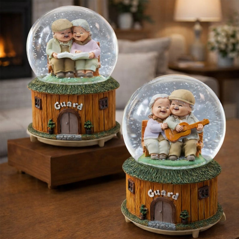 Sevginin zamansız halini yansıtan Mutlu Yaşlı Çift Kar Küresi ile yaşam alanlarınıza sıcaklık katın.