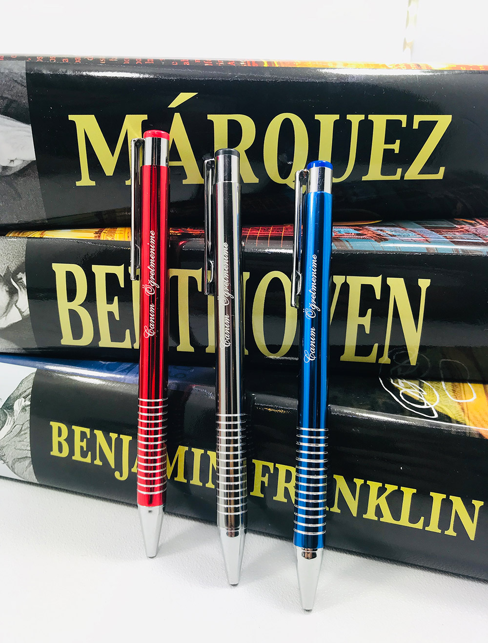 Öğretmene Tükenmez Kalem üç rengi mevcuttur . Üzerinde canım öğretmenime yazmaktadır. Öğretmenler günü için ekonomik bir hediye olacaktır
