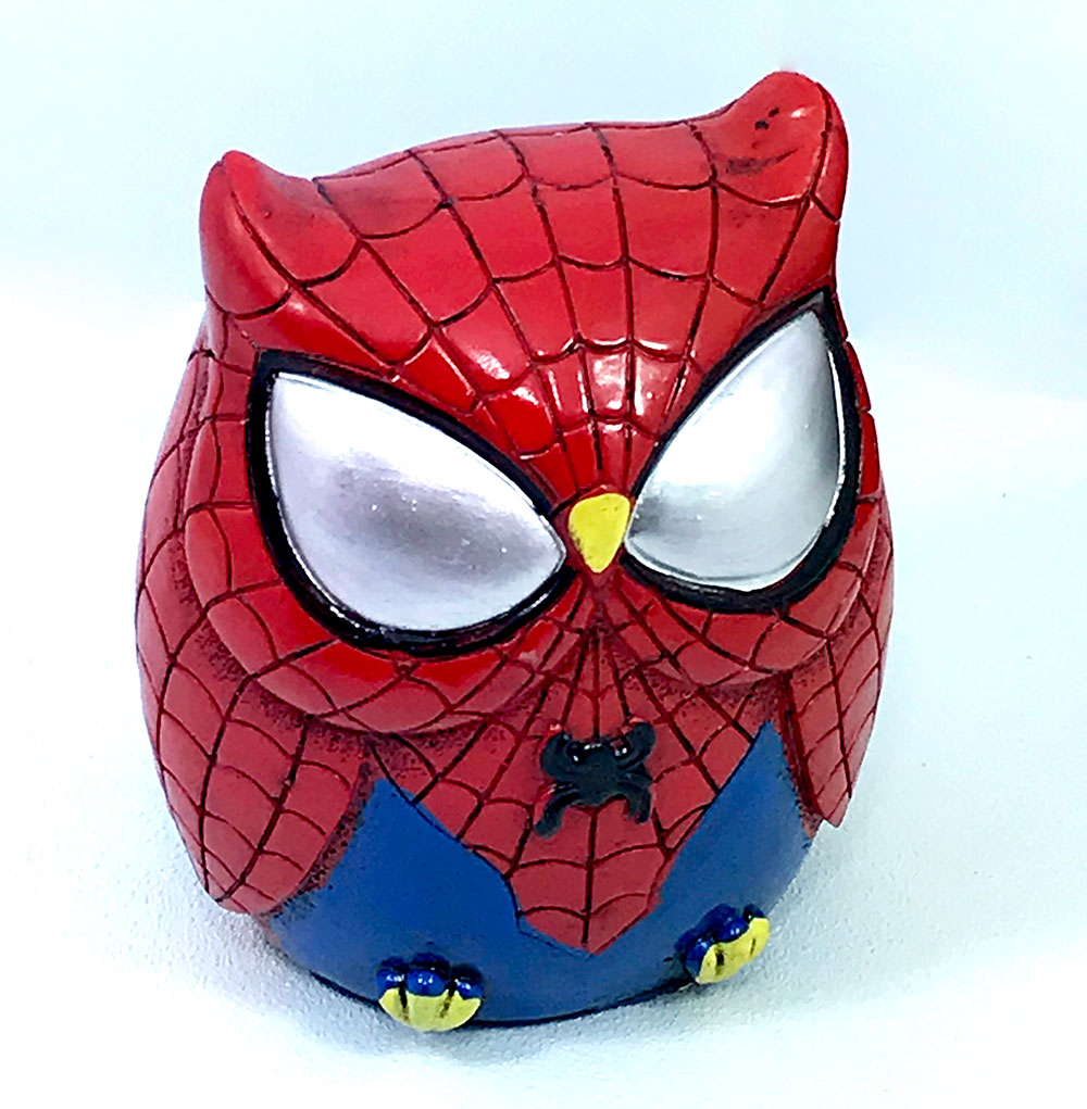 Örümcek Adam Baykuş Kumbara değişik tasarımı ile biblo ve ya kumbara olarak kullanılabilir. Polyester malzemeden üretilmiştir.