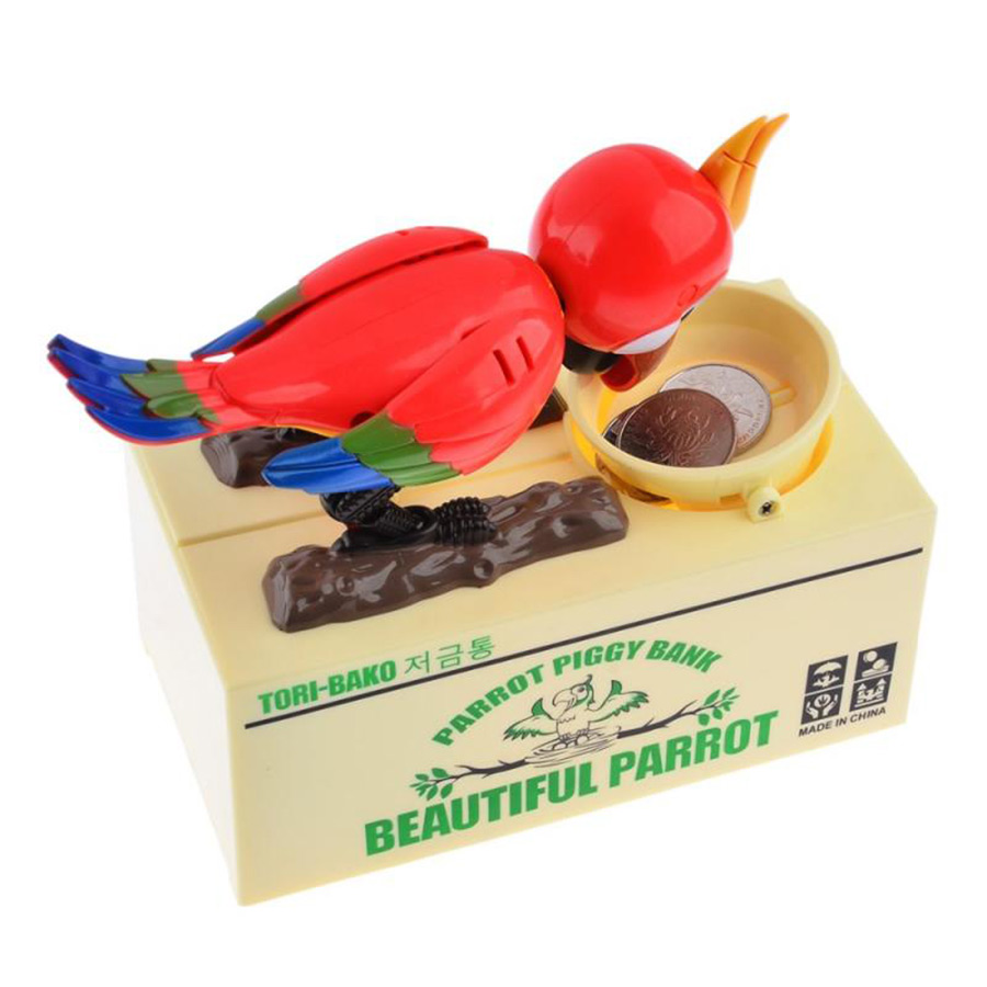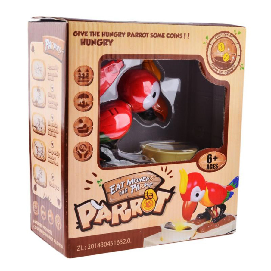 Para Kapan Papağan !! Kumbaranın içerisinde gayet güzel bir vaziyette oturmuş şekilde neşesi de yerinde olan papağan ,kumbaranın üzerinde bulunan beyaz renkli bölgeye parayı koyduğunuz anda papağan , kumbaranın kapağını neşeli miyav sesleri çıkararak açar ve parayı elini uzatıp alarak kapağı kapatır.Son derece eğlenceli ve eğitici özellikte olan ilginç sihirli bir kumbaradır. Papağan kumbara 2 adet kalem pille çalışmaktadır.