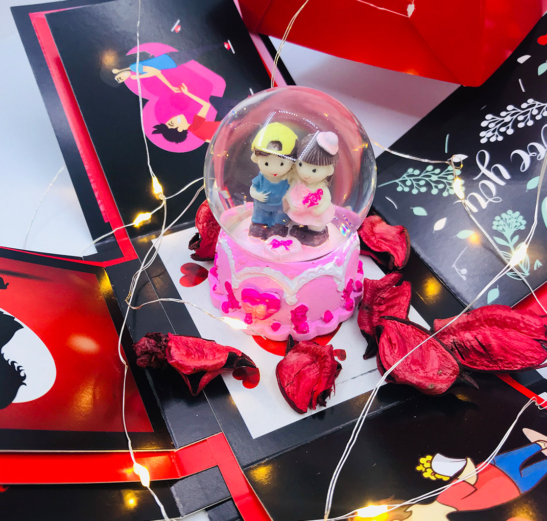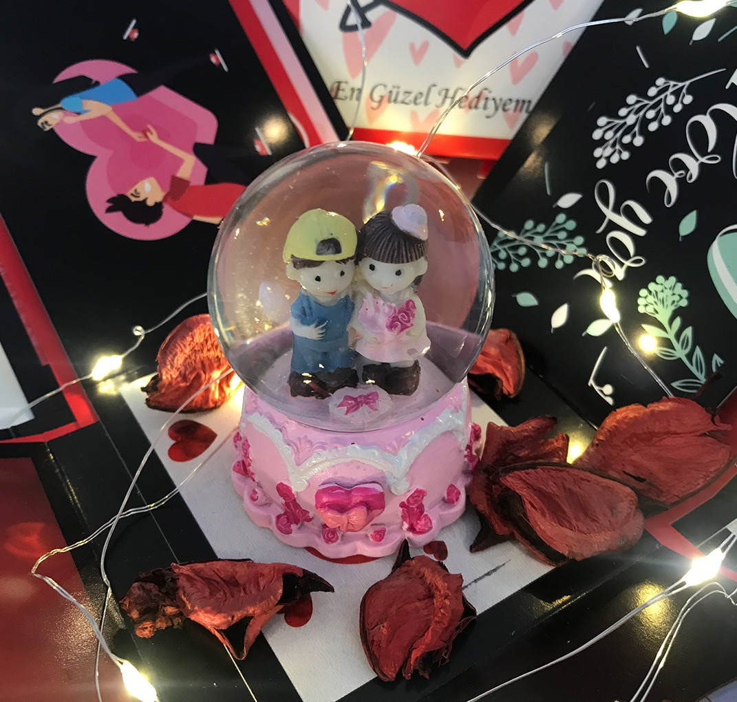 Patlayan Kutu Hediye Seti ile sevgilinizi mutlu edin. Patlayan kutu içerisinde bulunan led ışık ve kar küresi ile güzel bir hediye olmuştur.