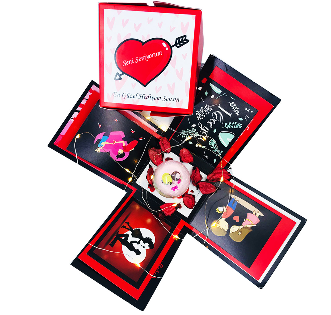 Patlayan Kutu Hediye Seti ile sevgilinizi mutlu edin. Patlayan kutu içerisinde bulunan led ışık ve kar küresi ile güzel bir hediye olmuştur. Sevgililer gününde sevgilinize alabileceğiniz güzel bir hediye alternatifi.