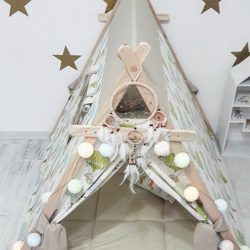 %100 pamuklu kumaşı ile hayvanlar temalı pencereli oyun çadırı. Her çocuk kendine özel alanı olsun ister, çocuklarınızın bu isteğini karşılayabilirsiniz.