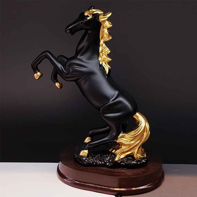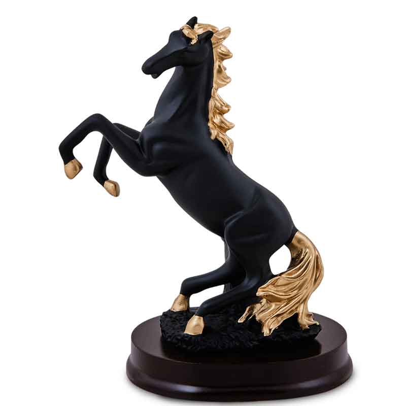 Şaha Kalkan At Biblo – Siyah & Gold Dekoratif Heykel