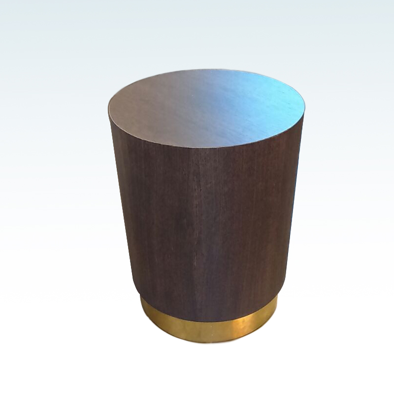 Silindir başucu sehpa kontraplak R:35cm x h:45cm üzeri ahşap kaplamalı cilalı prinç bazalı.