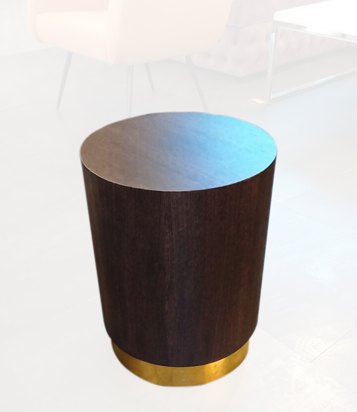 Sehpa Silindir başucu sehpa kontraplak R:35cm x h:45cm üzeri ahşap kaplamalı cilalı prinç bazalı.Evlerinize şıklık katacak sehpalar ve mobilya ürünleri.