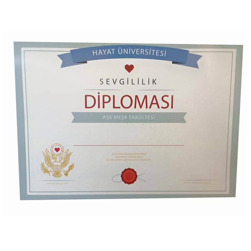 Aşkınız için göze alamayacağınız şey yoksa ve o sizin için çok değerliyse, sevginizi ifade etmenin en güzel yolu. En İyi Sevgililik Diplomasından geçer. Sevgilinizin adına özel olarak hazırlayacağınız Hayat Üniversitesi Aşk Meşk Fakültesinden Sevgililik diploması görenler mutluluktan havalara uçacaklar. Sevgilinizin bu diplomaya hak kazandığını düşünüyosanız alabileceğiniz hediyeler arasında.